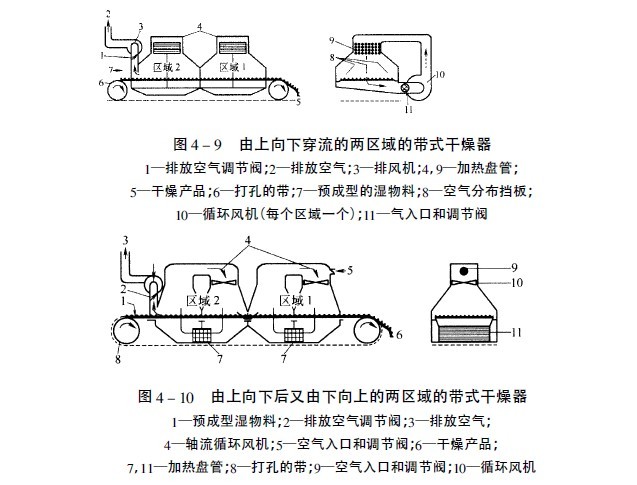 干燥機(jī),但都不適應(yīng)我國國情; 70年代初從原蘇聯(lián)引進(jìn)的“庫茲巴斯”移動(dòng)式谷物干燥機(jī),因無循環(huán)功能,機(jī)器笨重,干燥不均勻,故多數(shù)未使用。80年 用于粉狀食品生產(chǎn)的干燥設(shè)備有壓力干燥、閃蒸干燥、噴霧干燥組成,國內(nèi)采用壓力干燥生產(chǎn)速度快生產(chǎn)量大。壓力干燥系統(tǒng)的結(jié)構(gòu)、型式不完全相同,選擇確定出比較適合粉狀食品生產(chǎn)是關(guān)鍵。粉狀食品的特點(diǎn)是容量大小不定,顆粒大小不定,尤其排風(fēng)攜帶的除濕設(shè)備。經(jīng)過多家生產(chǎn)企業(yè)的應(yīng)用,事實(shí)證明采用旋風(fēng)加袋濾器的型式回收排風(fēng)系統(tǒng)的效果較好。一般粉狀食 穿流氣流帶式干燥機(jī)主要由頭部、布料機(jī)構(gòu)、若干干燥單元、出料裝置、網(wǎng)帶運(yùn)行機(jī)構(gòu)等組成。它采用強(qiáng)制通風(fēng)干燥法。由于熱空氣和濕物料的接觸面積大,既有對流傳熱,又有輻射傳熱,干燥強(qiáng)度大。同時(shí),因濕物料內(nèi)部水蒸汽排出的途徑較短,因此具有較高的干燥速率。