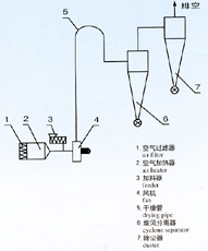 氣流干燥設備的干燥裝置可分為直接進料的、帶有分散器的和帶有粉碎機的。另外,還可分為有返料、熱風循環以及并流或環流操作的氣流干燥設備的干燥裝置。 1、直接進料的氣流干燥設備的干燥裝置:該裝置是目前應用最廣泛的一種,適用于濕物料分散性良好和只除去表面水分的場合,像干燥合